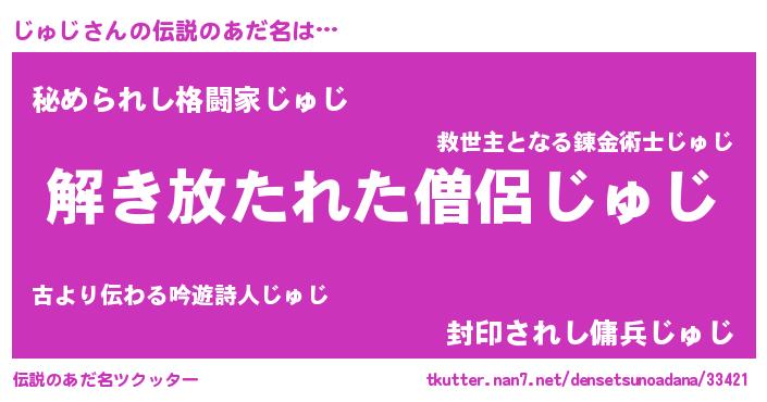 | 女子向けラノベタイトル風あだ名 | 『じゅじの卵を拾いまして』 |