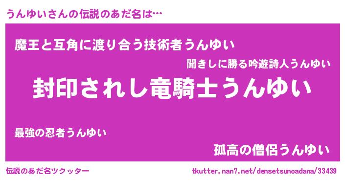 | 男性向けラノベタイトル風あだ名 | 『ウンユイアートオンライン』 |