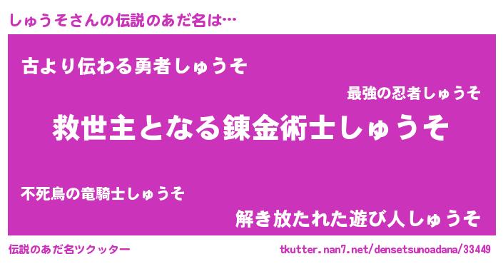| ヒーロー風カッコイイあだ名 | 『仮面シュダー』『友情の使者しゅうそ』 |