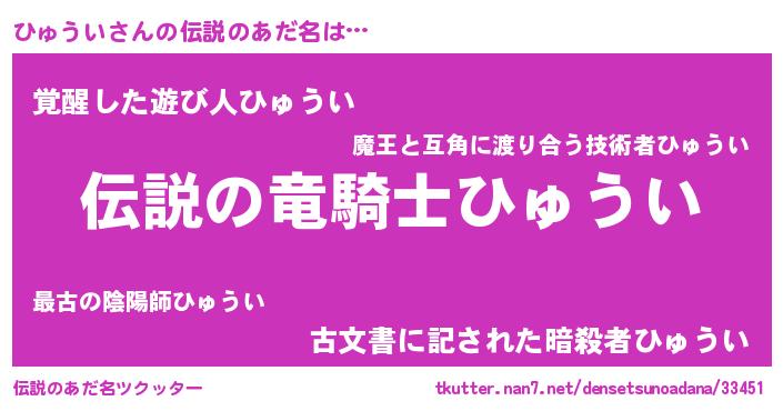 | 胡散臭い通販商品みたいなあだ名 | 『必ず成功するブレスレット…その名も「ひゅうい」』 |