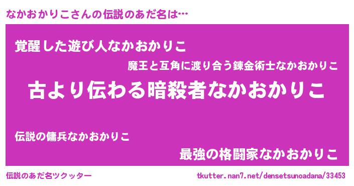 | 胡散臭い通販商品みたいなあだ名 | 『来世でも幸せになれる健康食品…その名も「なかおかりこ」』 |