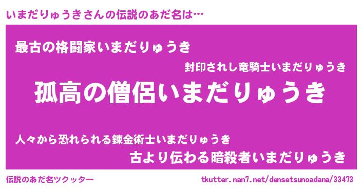 | 女子向けラノベタイトル風あだ名 | 『いまだりゅうきなんてお断りですっ。』 |