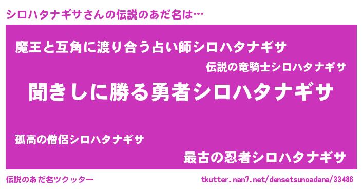 | ヒーロー風カッコイイあだ名 | 『ネオシロハタナギサ』 |