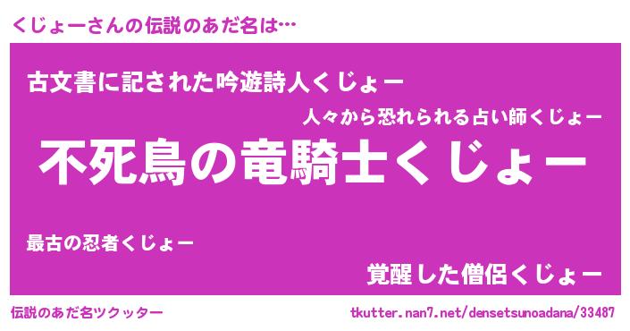 | 男性向けラノベタイトル風あだ名 | 『クジョーアートオンライン』 |