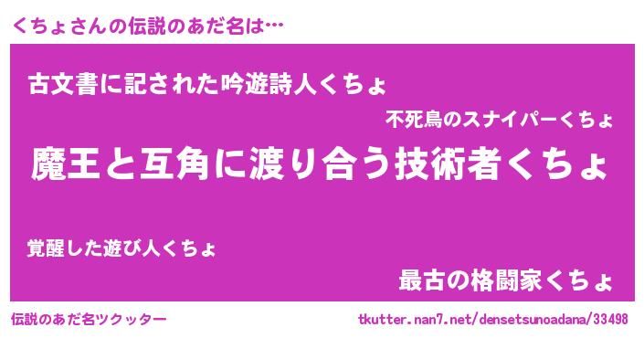 | ヒーロー風カッコイイあだ名 | 『愛の使者くちょ』『最強戦士クチョ』 |