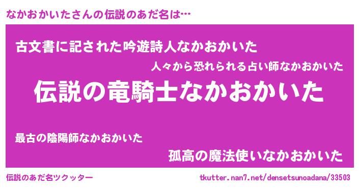 | 胡散臭い通販商品みたいなあだ名 | 『必ず成功するブレスレット…その名も「なかおかいた」』 |