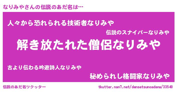 | 意味不明あだ名 | 『とにかく怪しいなりみや』 |