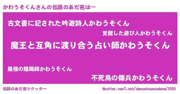 | 意味不明あだ名 | 『住所不定無職かわうそくん(14歳)』 |