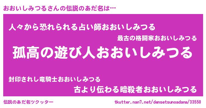 | 胡散臭い通販商品みたいなあだ名 | 『信頼と実績のペンダント…その名も「おおいしみつる」』 |