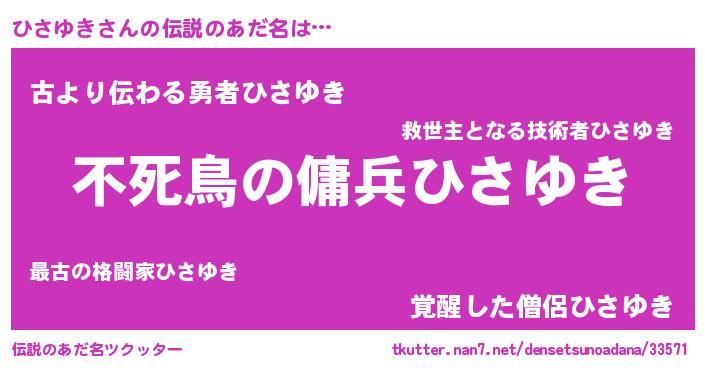 | ヒーロー風カッコイイあだ名 | 『スーパーヒサユキ』『ネオヒサユキ』 |