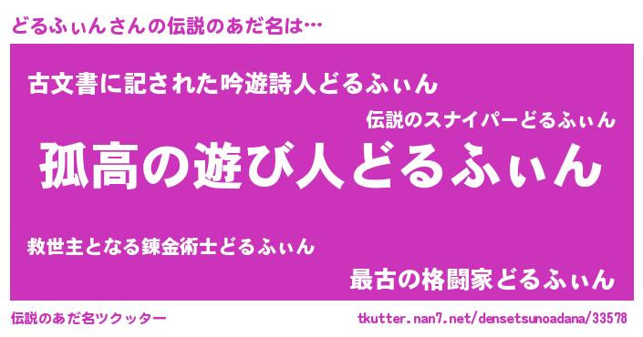 | 女子向けラノベタイトル風あだ名 | 『どるふぃんは平凡を望む』 |