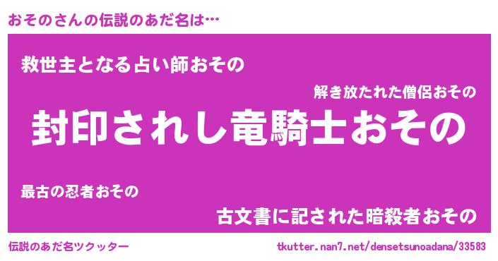 | 胡散臭い通販商品みたいなあだ名 | 『億万長者になれるブレスレット…その名も「おその」』 |