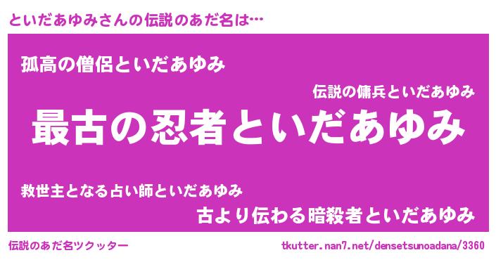 | 意味不明あだ名 | 『といだあゆみフォーエバー』 |