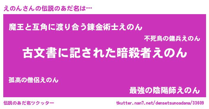 | ヒーロー風カッコイイあだ名 | 『ネオエノン』『愛の使者えのん』 |