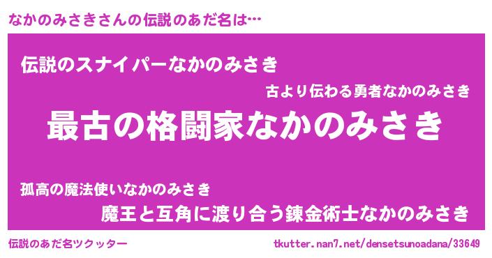 | 男性向けラノベタイトル風あだ名 | 『この素晴らしい世界になかのみさきを!』 |