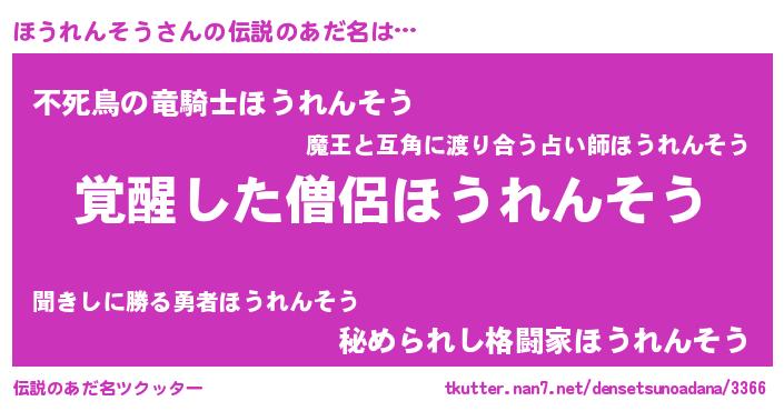 | ヒーロー風カッコイイあだ名 | 『炎刃騎士ホウ』『スーパーホウレンソウ』 |