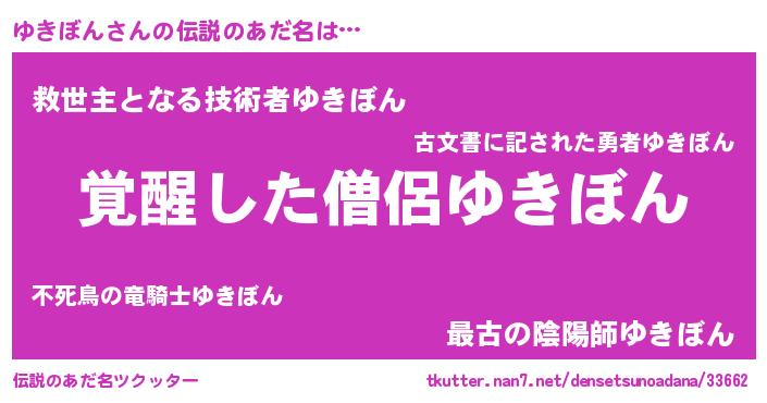 | 男性向けラノベタイトル風あだ名 | 『Re:ゆきぼんから始める異世界生活』 |