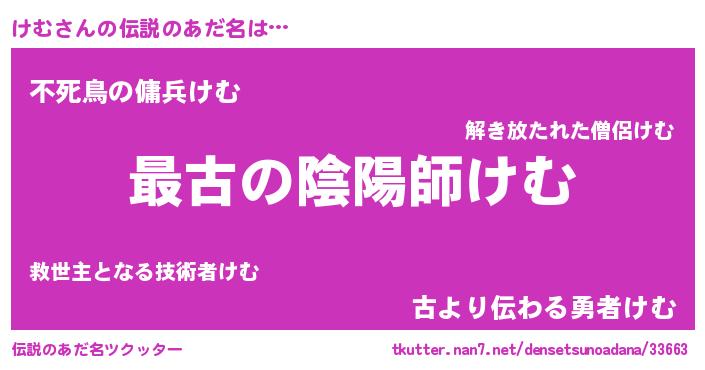 | 女子向けラノベタイトル風あだ名 | 『けむ伯爵の花嫁』『闇のけむ』 |