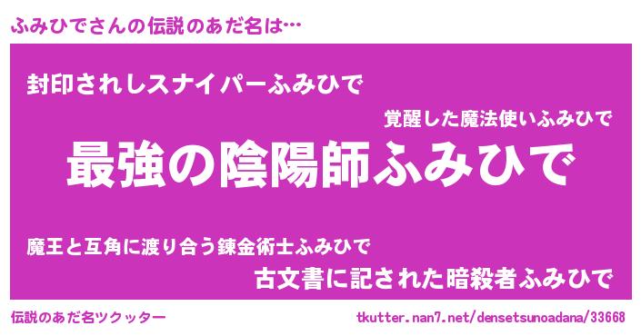 | 意味不明あだ名 | 『住所不定無職ふみひで(91歳)』 |