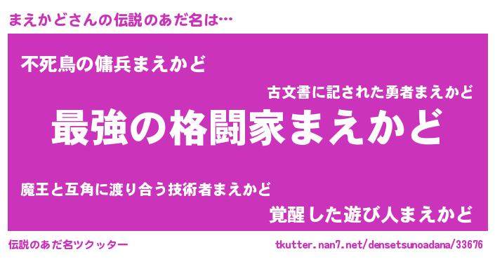 | 男性向けラノベタイトル風あだ名 | 『まえかどに滅ぼされるだけの簡単なお仕事です』 |