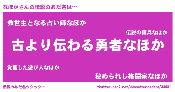 | 男性向けラノベタイトル風あだ名 | 『この素晴らしい世界になほかを!』 |