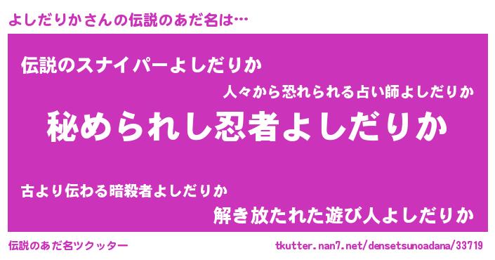 | 意味不明あだ名 | 『よしだりかフォーエバー』 |