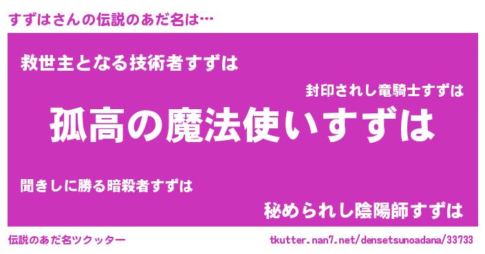 | 胡散臭い通販商品みたいなあだ名 | 『信頼と実績のサプリメント…その名も「すずは」』 |