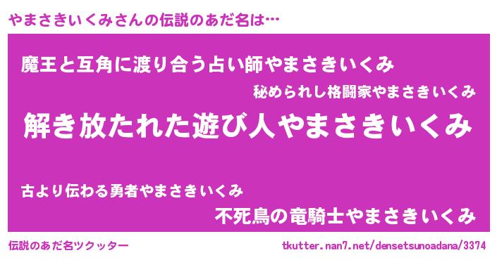 | 意味不明あだ名 | 『住所不定無職やまさきいくみ(74歳)』 |