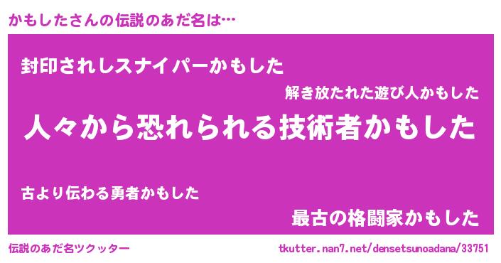 | 男性向けラノベタイトル風あだ名 | 『緋弾のカモシタ』 |