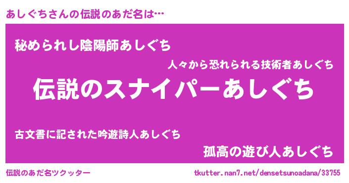 | 意味不明あだ名 | 『自称あしぐち』『ペロリンあしぐち』 |