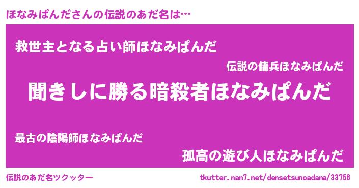 | 胡散臭い通販商品みたいなあだ名 | 『絶対に幸福をもたらす健康食品…その名も「ほなみぱんだ」』 |