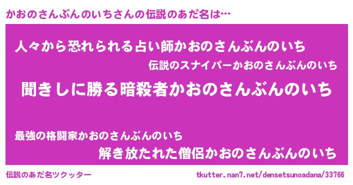 | 男性向けラノベタイトル風あだ名 | 『緋弾のカオノサンブンノイチ』 |