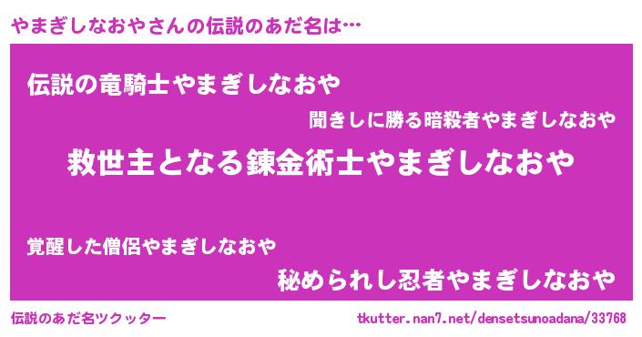 | 女子向けラノベタイトル風あだ名 | 『闇のやまぎしなおや』 |