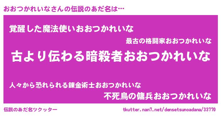 | 男性向けラノベタイトル風あだ名 | 『魔弾の王とおおつかれいな』 |