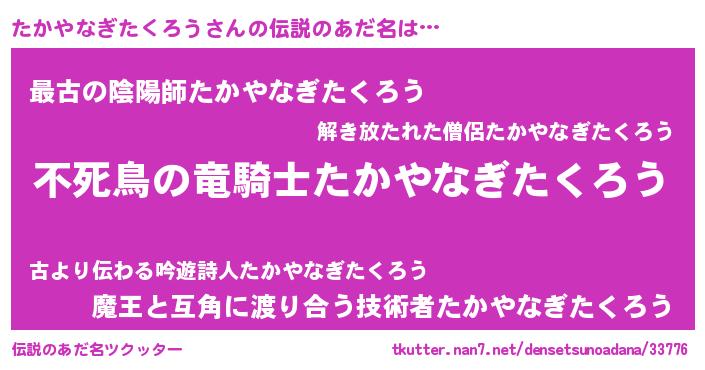 | ヒーロー風カッコイイあだ名 | 『最強戦士タカヤナギタクロウ』 |