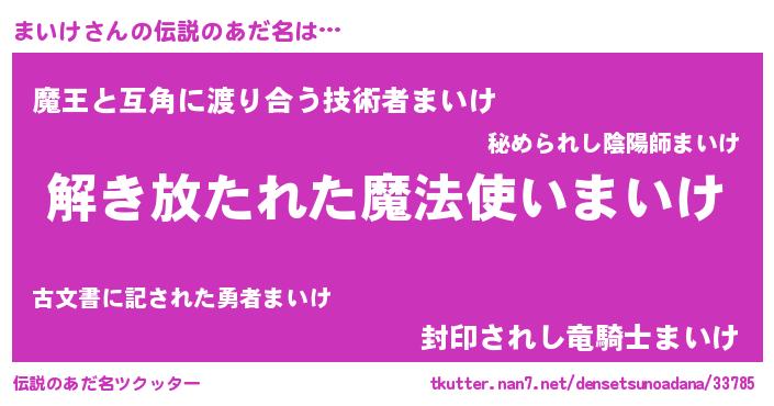 | 意味不明あだ名 | 『とにかく怪しいまいけ』『自称まいけ』 |
