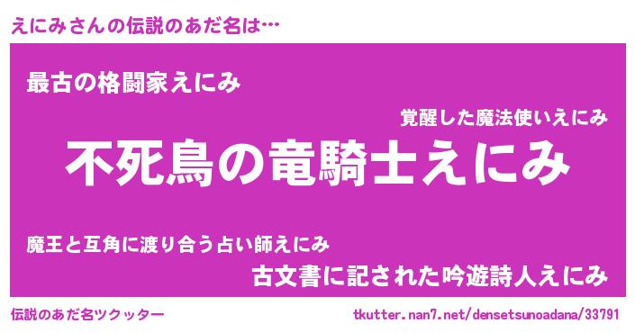 | ファンタジー風あだ名 | 『エニフェル』『エターナルエニミー』 |