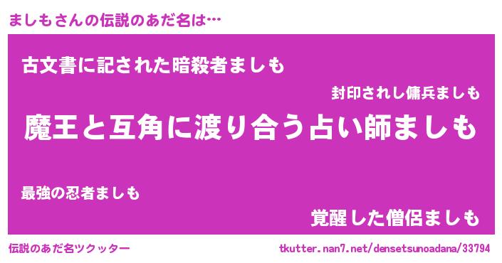 | ヒーロー風カッコイイあだ名 | 『愛の使者ましも』『ネオマシモ』 |