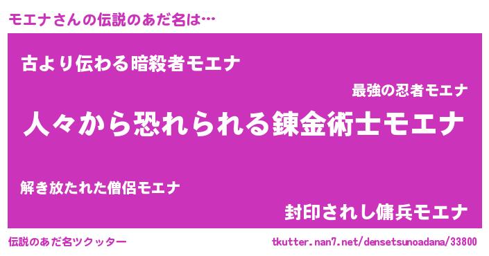 | ヒーロー風カッコイイあだ名 | 『友情の使者モエナ』『ネオモエナ』 |