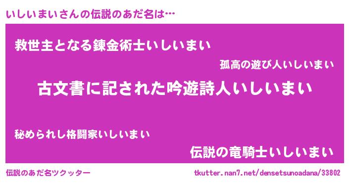 | 意味不明あだ名 | 『住所不定無職いしいまい(11歳)』 |