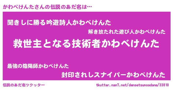 | ヒーロー風カッコイイあだ名 | 『天空の使者かわべけんた』 |