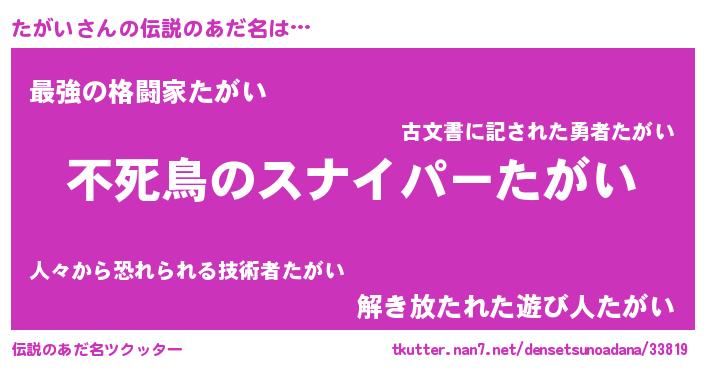 | 胡散臭い通販商品みたいなあだ名 | 『モテモテ間違いなし霊験あらたかなお札…その名も「たがい」』 |