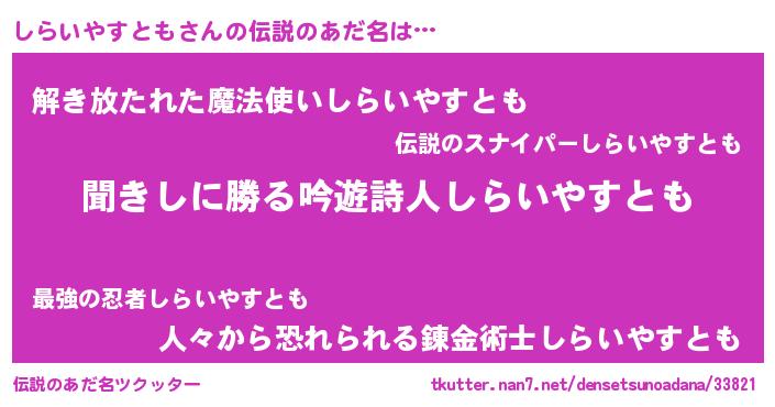 | ヘコむあだ名 | 『しらいやすとも(小並感)』『しらを』 |