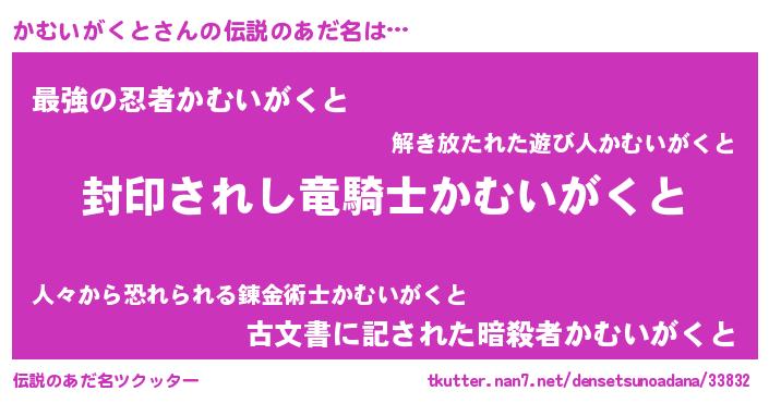 | ヒーロー風カッコイイあだ名 | 『最強戦士カムイガクト』『仮面カムダー』 |