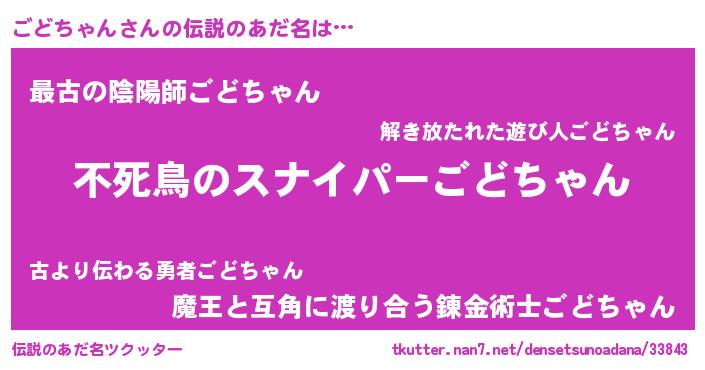 | ヒーロー風カッコイイあだ名 | 『仮面ゴドダー』『スーパーゴドチャン』 |