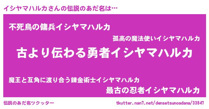 | 意味不明あだ名 | 『永久保存イシヤマハルカ』 |