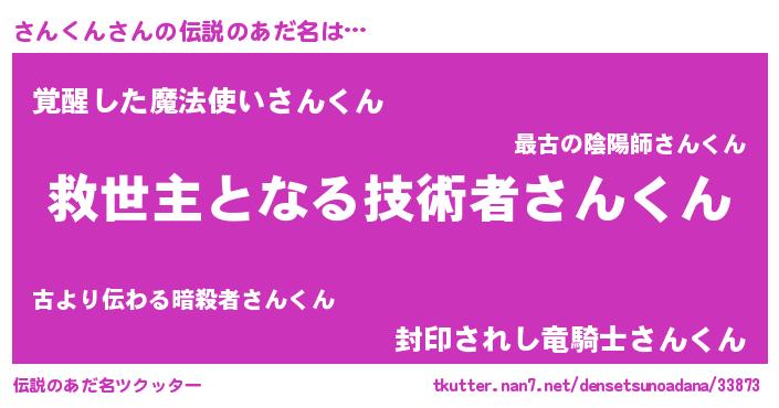 | 男性向けラノベタイトル風あだ名 | 『うちのさんくんが世界を掌握している!』 |