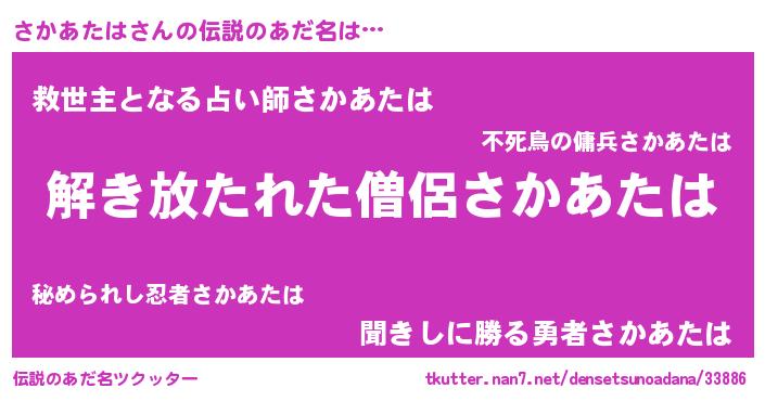 ヒーロー風カッコイイあだ名 | 『銀牙騎士サカ』『正義の使者さかあたは』 |