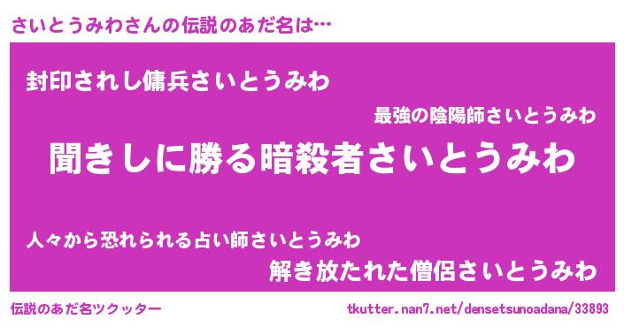 | 意味不明あだ名 | 『永久保存さいとうみわ』 |