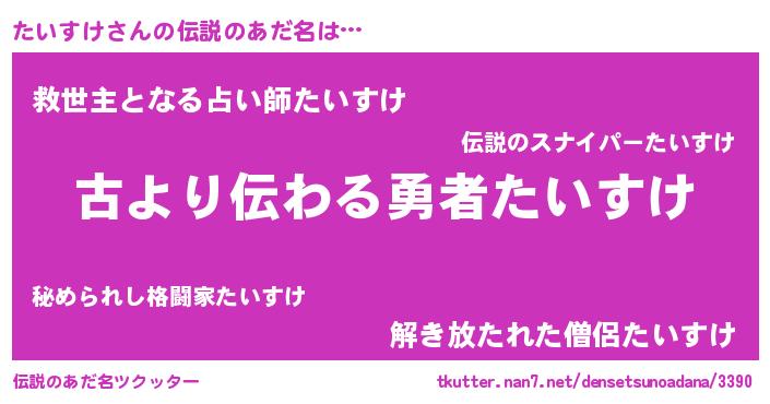 | 胡散臭い通販商品みたいなあだ名 | 『来世でも幸せになれる水素水…その名も「たいすけ」』 |